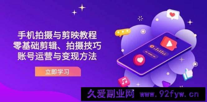 ![图片[1]-(14296期)抖音手机拍摄与剪映教程:零基础剪辑、拍摄技巧到账号运营与变现方法-就爱副业网](https://www.92fyw.cn/wp-content/uploads/2025/04/20250413_67fbef803e7cc.jpg)