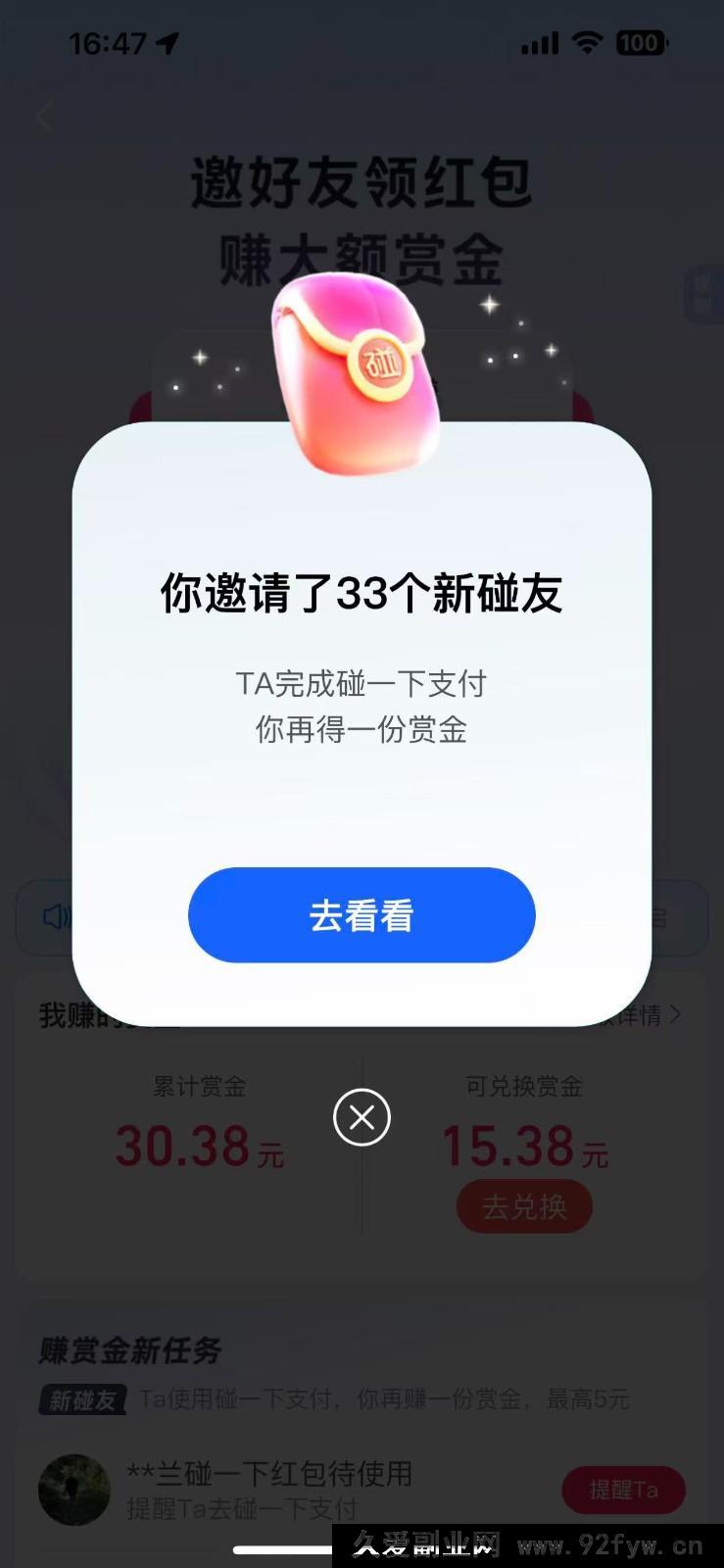 支付宝碰一碰开启自动掘金模式,全程全自动操作,单号每日保底收益 300+。支付宝的碰一碰想必各位小伙伴都不陌生,这可是今年推出的热门新活动,几乎每天都有相关福利。特别是周五的碰友日,最高能领取 15 元红包,着实诱人。碰一碰还有推广赚赏金的玩法,即邀请用户扫描自己的推广码,我们就能获取佣金奖励,之后可用于购物消费等,其原理与之前的赚钱红包码类似。在操作过程中,为小伙伴们算了笔账,单次利润可达 10+,且每天都能操作一次,多号操作收益更可观。
