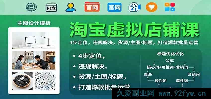 课程架构如下:0. 先导课——探究投身淘宝虚拟店铺的缘由 第1课 4个关键步骤明晰店铺【定位】,规划清晰的店铺蓝图 第2课 妥善处理淘宝【违规】事项,助力新手轻松开启店铺 第3.1课 优质【货源】的完备解决方案 第3.2课 高点击率【主图】的设计与制作 第3.3课 零基础也能轻松完成的【详情页】制作 第3.4课 高效率的【标题】组合诀窍 第3.5课 高转化率【评论和问大家】的优化流程 第3.6课 打造高流量【排名】的有效方法 第4课 宝贝发布详尽教程,零基础也能在淘宝轻松开启网赚之旅 第6课 打造爆款宝贝,批量运营店铺,倍数级放大收益