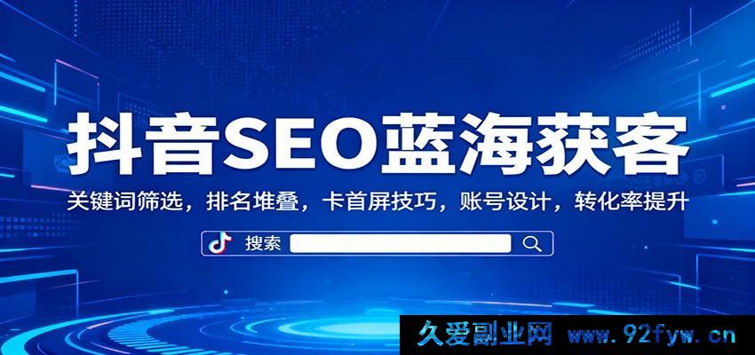 《抖音SEO实操课(精准引流)》,这是一款为商家与创业者量身定制的抖音搜索流量实战课程。它以抖音SEO底层逻辑(包含关键词分析、排名因素等)、账号优化(涵盖关键词堆叠、排名卡位等手段)以及转化提升(聚焦视频优化、账号维护)作为核心板块,借助9节系统教程,一步一步引导学员掌握抖音搜索这片蓝海市场里的精准引流诀窍。该课程全面涵盖关键词筛选、账号设计、排名卡位等关键技能,助力学员依据抖音SEO原理,获得精准曝光,达成被动获客的目标。有部分学员反馈,在完成课程学习后,单个账号每月平均能实现精准引流超5000人,转化率更是提高了30%,此课程非常适合传统商家、电商卖家以及流量操盘手。