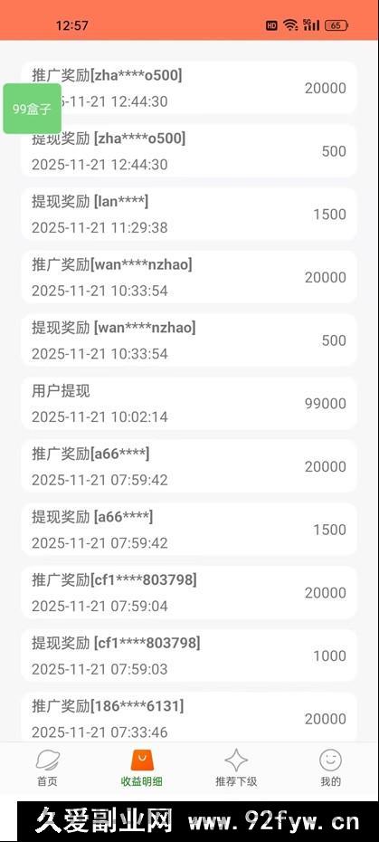 【推广奖励】成功直推一个用户并让其提现成功,可获取“2元”新人推广奖励。【永久提成奖励】一旦推广成功,将终身绑定:直推用户提现时,您可获得5%的收益,间接推荐用户能获得3%的收益。官方会提供推广教程,免费教学,其中包含推广文案以及可免费推广的平台和路径。